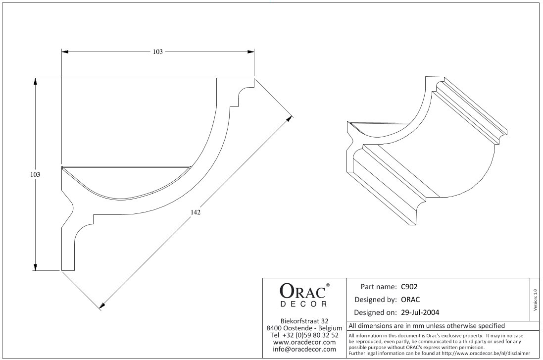 C902 карниз из полиуретана от бельгийского производителя лепного декора ORAC DÉCOR (Oрак Декор).