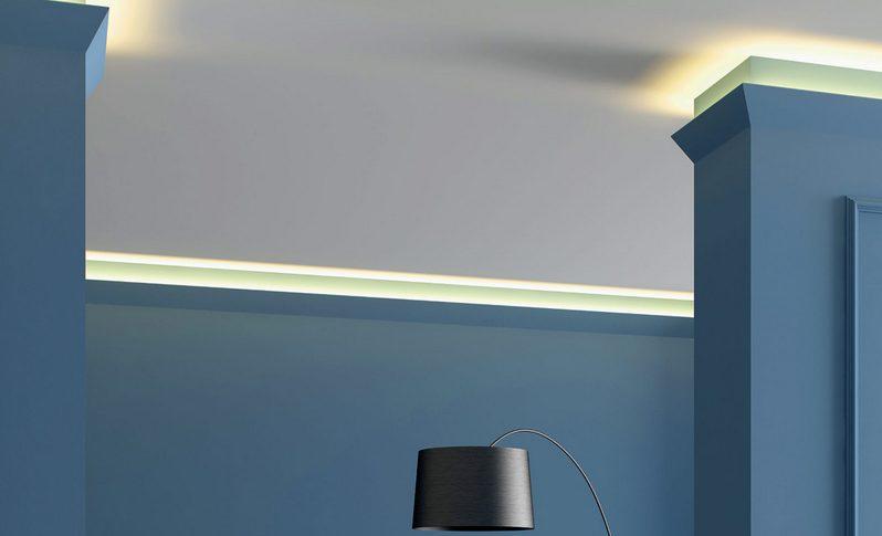 Установка карнизов для светодиодной подсветки осуществляется на монтажный клей ORAC DECOFIX PRO FDP500.