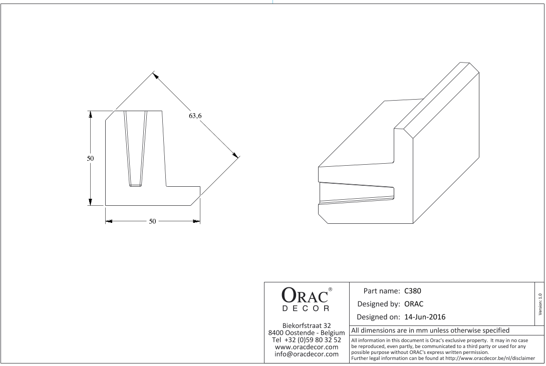 C380 профиль для скрытого освещения L3 из полиуретана от бельгийского производителя лепного декора ORAC DÉCOR (Oрак Декор).