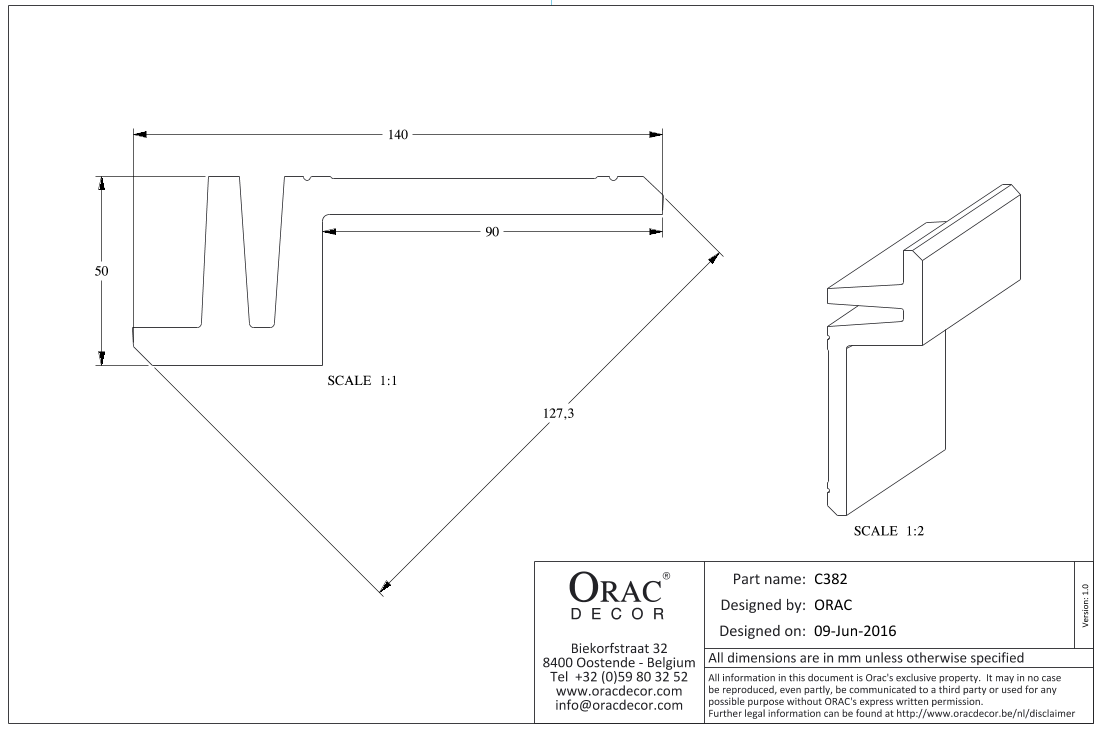 C382 профиль для скрытого освещения L3 из полиуретана от бельгийского производителя лепного декора ORAC DÉCOR (Oрак Декор).