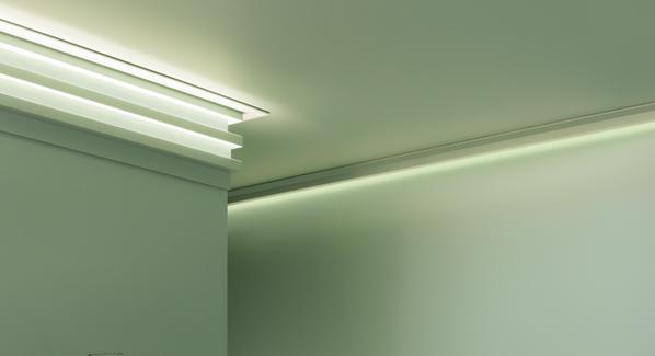 Установка профиля для скрытого освещения C383 квалифицированным мастером на оригинальный клей Орак Декор и соблюдением инструкции гарантируют качественный монтаж и долговечность.