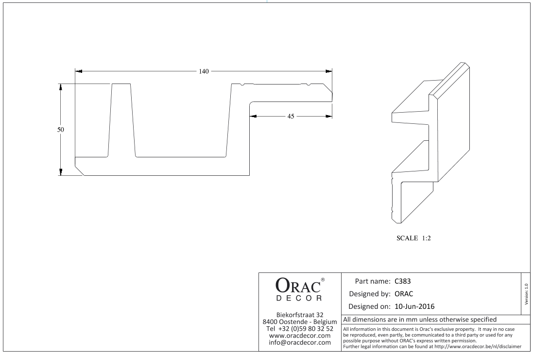 C383 профиль для скрытого освещения L3 из полиуретана от бельгийского производителя лепного декора ORAC DÉCOR (Oрак Декор).