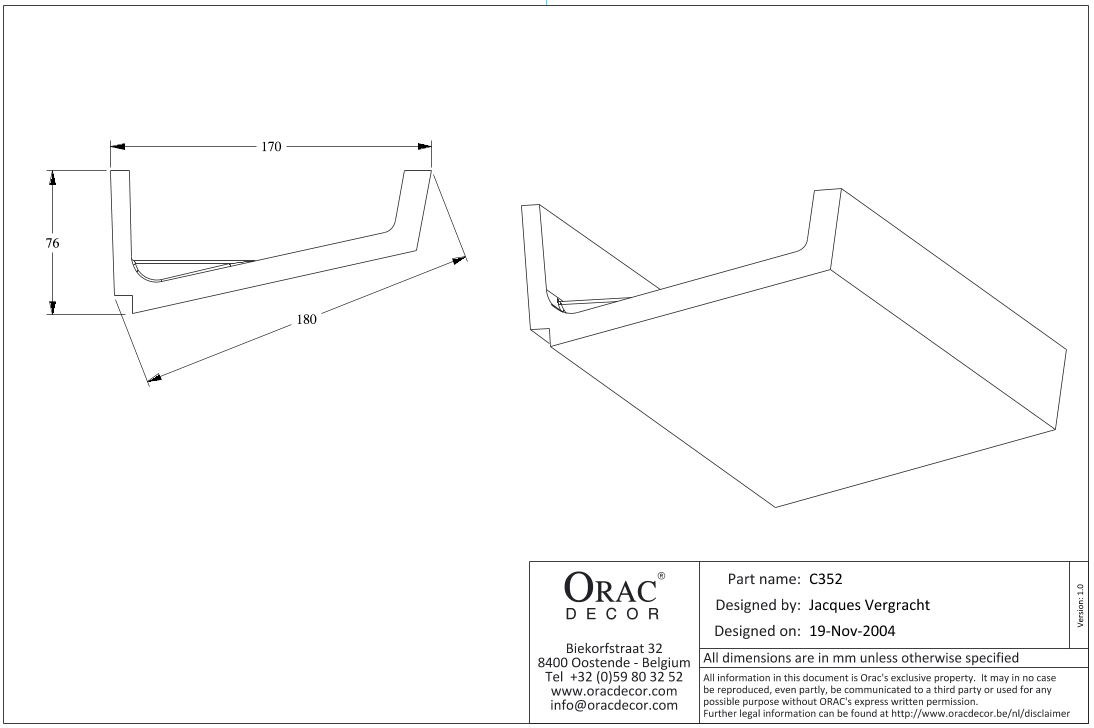 С352 профиль для скрытого освещения Flat из полиуретана от бельгийского производителя лепного декора ORAC DÉCOR (Oрак Декор).