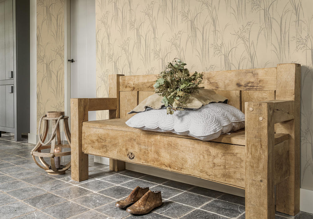 Рекомендуем использовать обои из коллекции Dacha в комбинации с цветами из палитры HYGGE 3 DACHA.