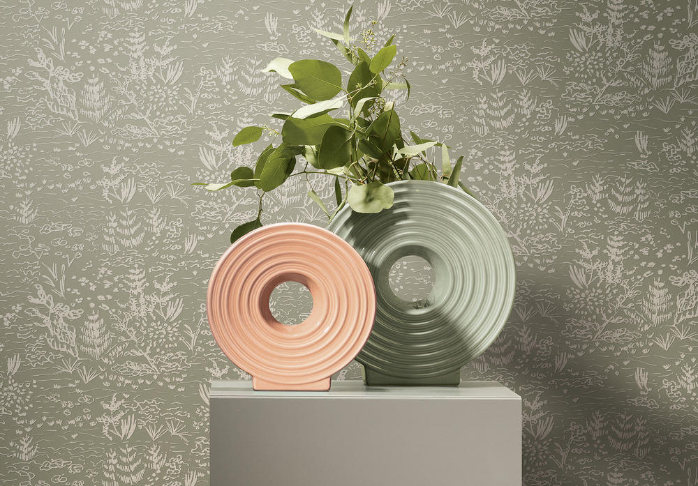 Рекомендуем использовать обои из коллекции Nature в комбинации с цветами из палитры HYGGE 5 NATURE.