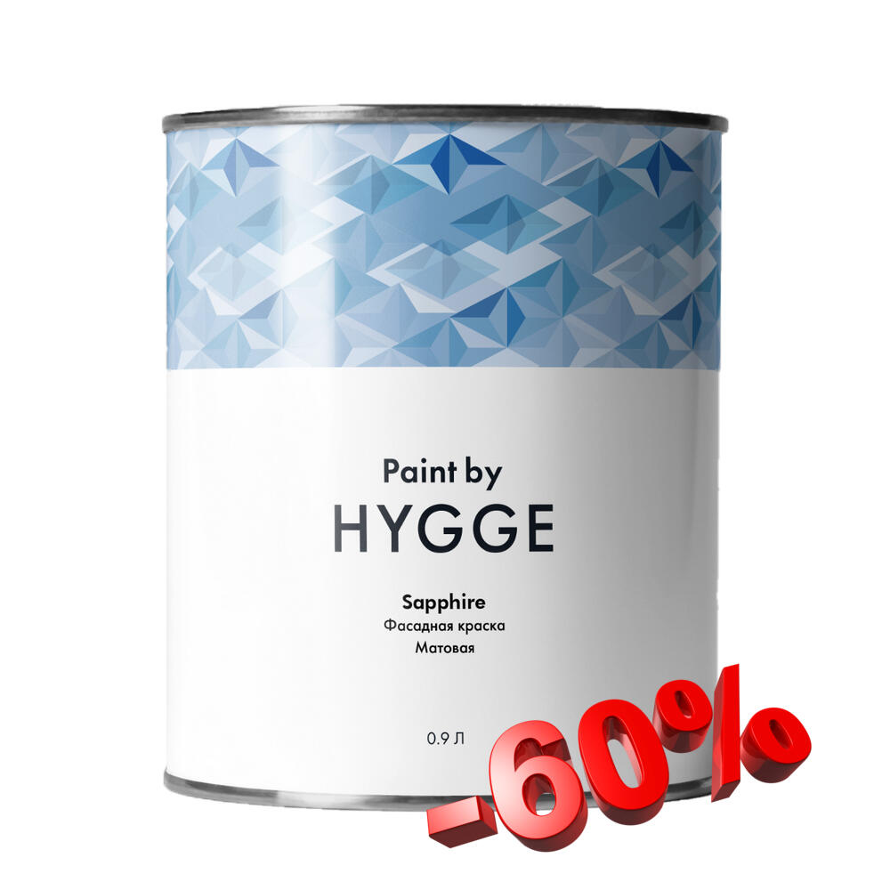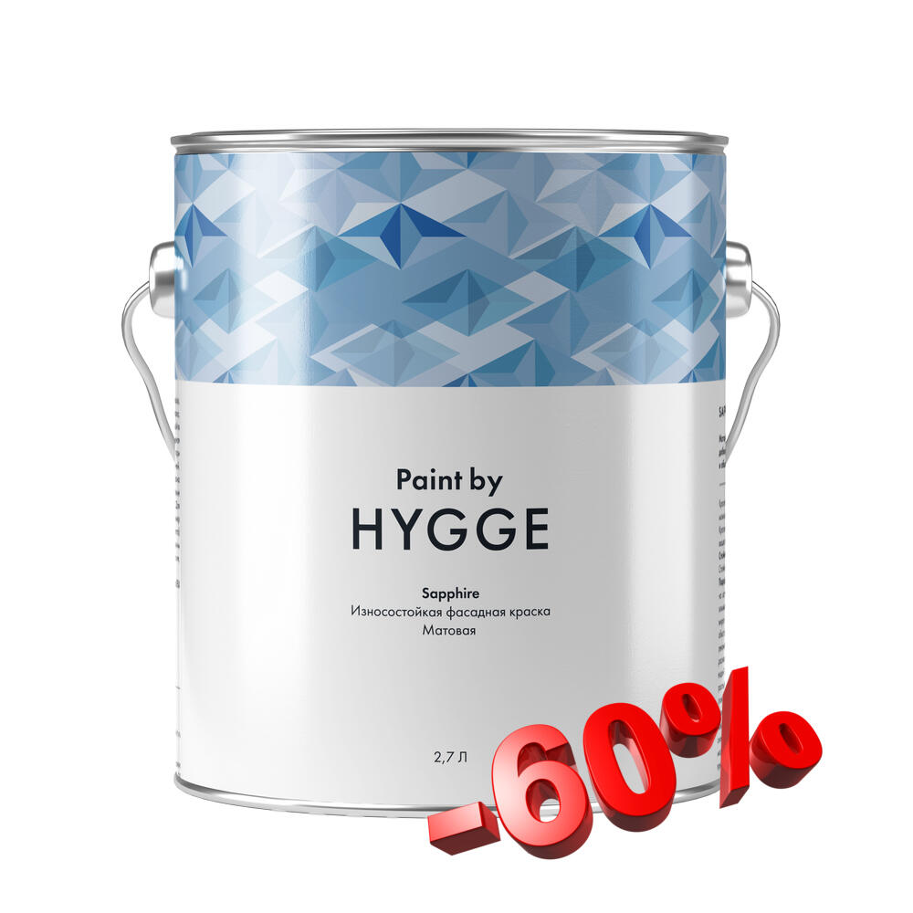 Распродажа краски со скидкой 60%. Sapphire — первая фасадная краска в линейке HYGGE Paint — предназначенная для окрашивания дерева, штукатурки, кирпичной и каменной кладки, алюминиевого и винилового сайдингов.