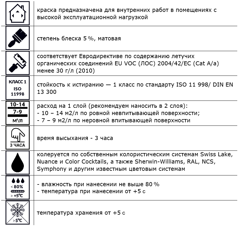 Swiss Lake Matt Pro — матовая краска на основе акриловой и полиуретановой дисперсии, также в составе имеет наночастицы серебра. Уникальный состав этой краски делает её идеальной для использования во влажных помещениях, а также в помещениях с высокой эксплуатационной нагрузкой. Краска произведена по швейцарским технологиям из качественного сырья с добавлением добавок от плесени и грибка.