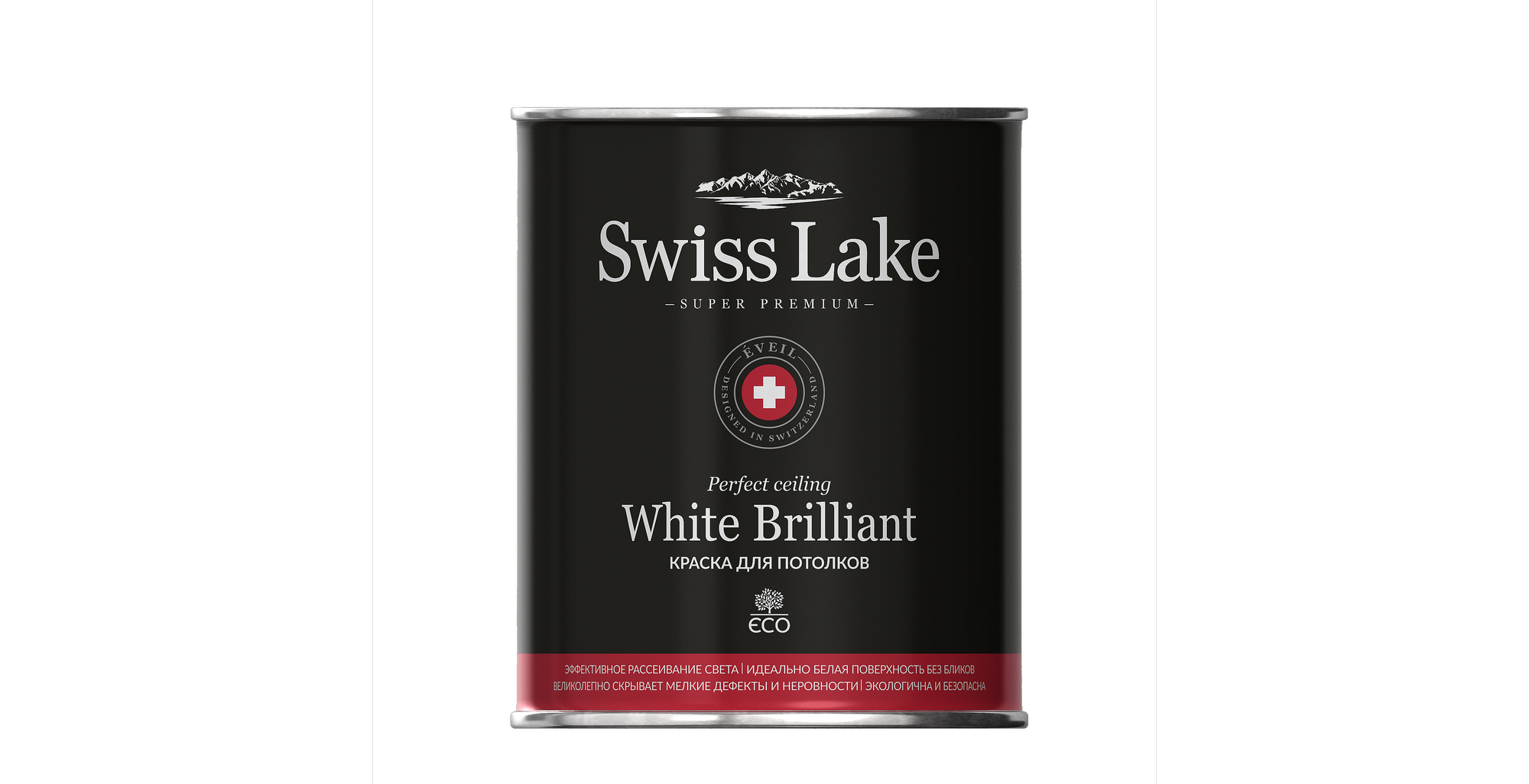 Swiss Lake White Brilliant — ультраматовая потолочная краска, обладающая высокой степенью белизны. Придаст потолку вид безупречно ровной матовой поверхности. Краска произведена по швейцарским технологиям из качественного сырья с добавлением добавок от плесени и грибка.
