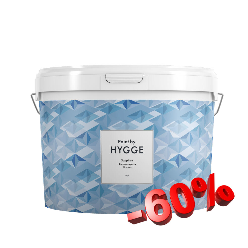 Распродажа краски со скидкой 60%. Sapphire — первая фасадная краска в линейке HYGGE Paint — предназначенная для окрашивания дерева, штукатурки, кирпичной и каменной кладки, алюминиевого и винилового сайдингов.
